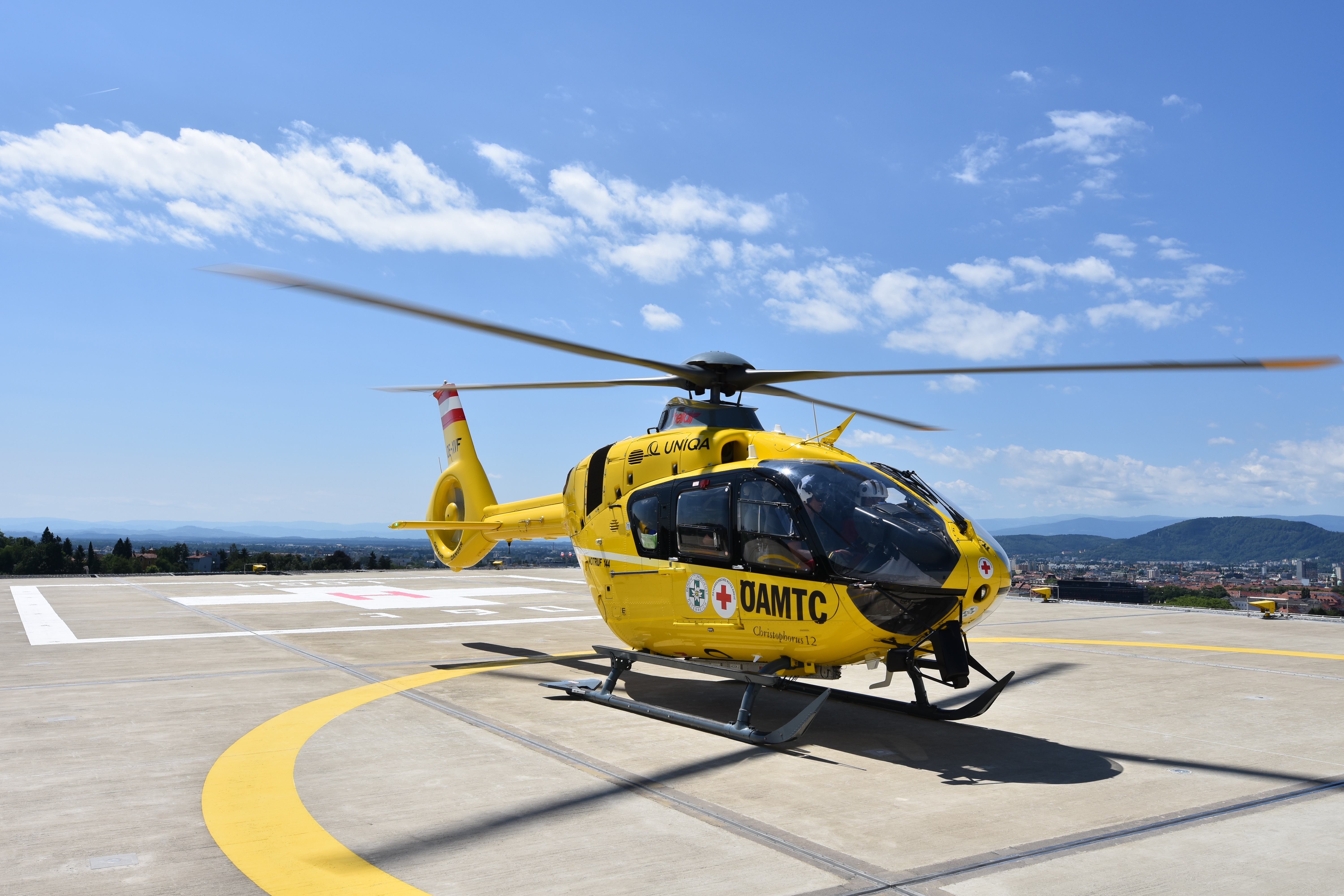 Rettungshubschrauber auf dem Landesplatz des LKH Graz.